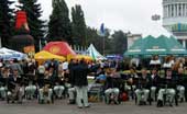 Бывшая Выставка достижений народного хозяйства встретила нас радостно и весело: возле входа играл наш любимый оркестр пивоваренного завода «Оболонь», поэтому настроение было задано по умолчанию и с самого начала – сегодня праздник. От обилия предлагаемых сортов украинского пива рябило в глазах и начиналось усиленное слюноотделение. Производители украинского пива постарались на славу – продукция каждого пивзавода была представлена в широком ассортименте, с соответствующими логотипами, рекламными материалами и фирменными зонтиками-палатками, а само пиво наливалось по всем правилам – холодное, с положенной шапочкой пены, по доступным ценам.