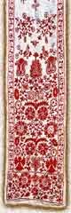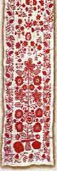 Вышивкой украшали рушники, фиранки, женскую и мужскую одежду. Особенное внимание уделялось рушникам – древним талисманам дома, семьи. В древности рушник, вышитый соответствующими узорами-символами, был неотъемлемым атрибутом многих обрядов: с рушником приходили к роженице приветствовать появление на свет нового человека, встречали и провожали дорогих гостей, справляли брачные обряды, проводжали в последний путь, украшали образа и накривали хлеб на столе. Рушники были своеобразным освящением начала дела и его окнчания, так, при возведении дома рушниками застилались подвалы, хлебом-солью на рушнике освящалось начало жатвы, на рушниках опускался гроб в могилу, рушниками скрепляли куплю-продажу и т.д. | |