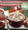 | Вареники поставить на час в холодильник, а затем варить их в кипящей подсоленной воде до тех пор, пока они не всплывут. Подать их к столу со сметаной.