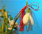 С той поры в честь освободителя мира от тьмы и грусти молодые люди сплетают два тонких шнурочка с кисточками: один белый и один красный. Они дарят их девушкам, которых любят, или близким и родным. Красный цвет обозначает любовь ко всему прекрасному, напоминая цвет крови юноши. Белый цвет символизирует здоровье и чистоту подснежника, первого весеннего цветка.